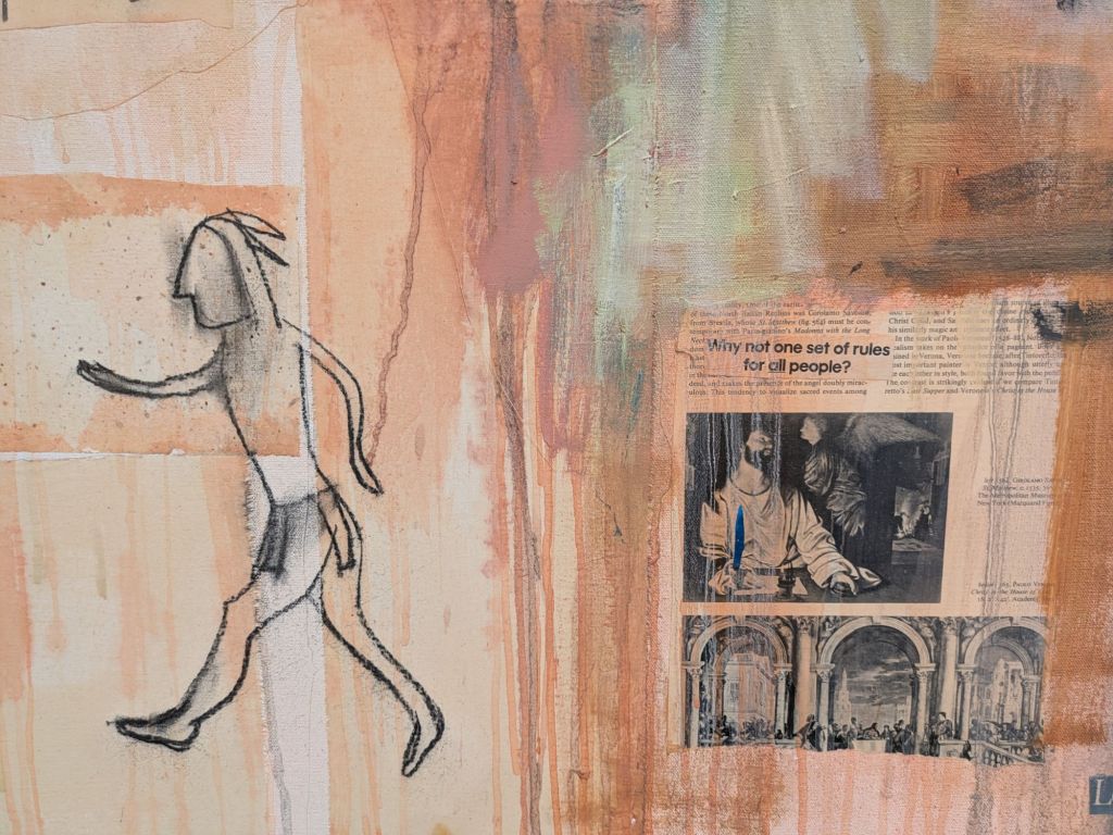 At the core of Sturtevant’s practice lies a profound engagement with power: how it operates, how it is observed, and how it is internalized. Her work resonates with Michel Foucault’s theories on systems of control, particularly his concept[ion] of the [way that the] panopticon [works]. Much like Foucault’s model, Sturtevant’s work places both the creator and the viewer within a dynamic of observation and complicity.