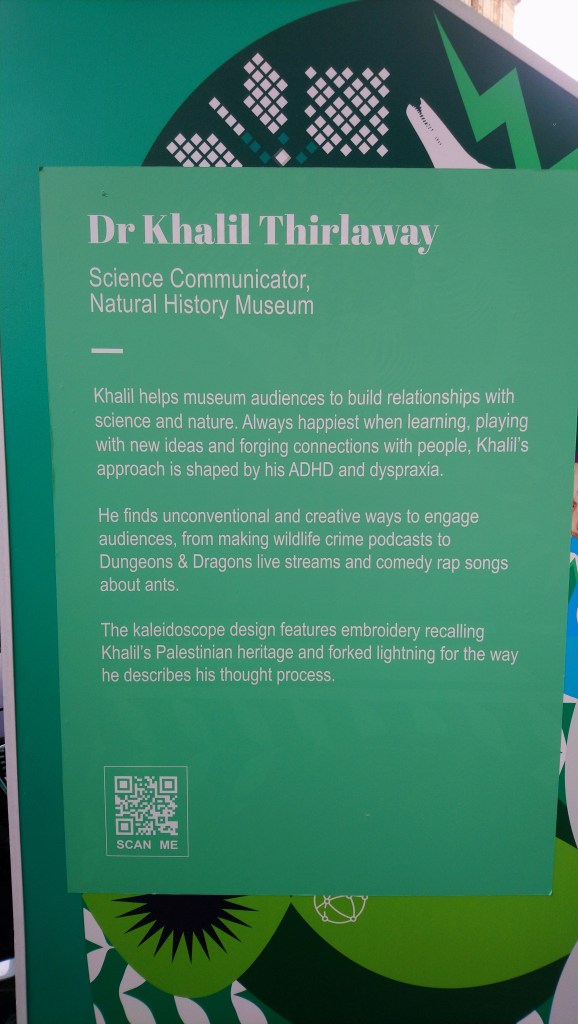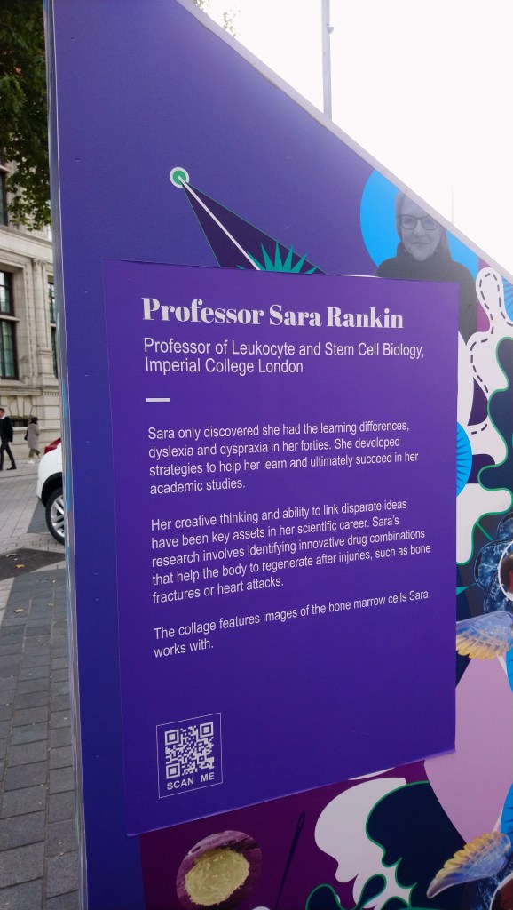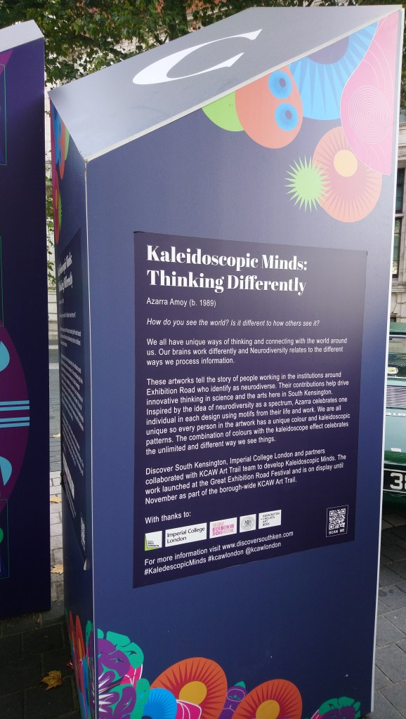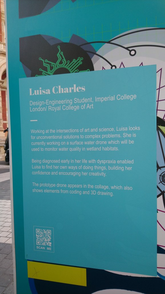 Came across this inspiring installation on Exhibition Road in Central London. It highlights neurodiverse researchers in the leading institutions (Imperial College, Science Museum, V&A, Royal College of Art) along this key street. The graphics are engaging and the individual examples highlight the importance of neurodiversity in research.