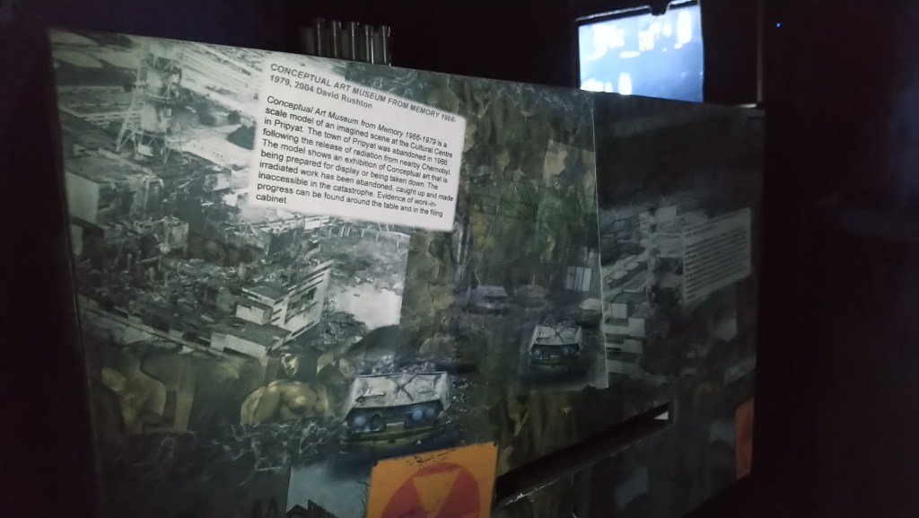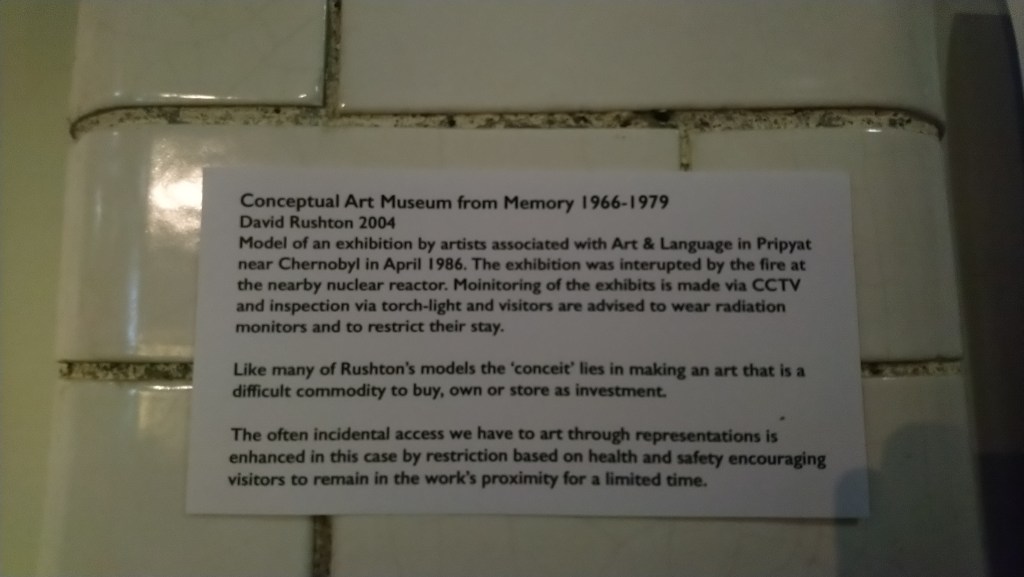 There is also the question of value. Dave’s perhaps masterwork (though the whole Merz project in Sanquhar might be the work) is installed in the meat fridge. It is an installation of Conceptual Art, by Art & Language in a gallery in Pripyat accidentally preserved by the Chernobyl Nuclear disaster which means that the work is preserved and unable to become a commodity.