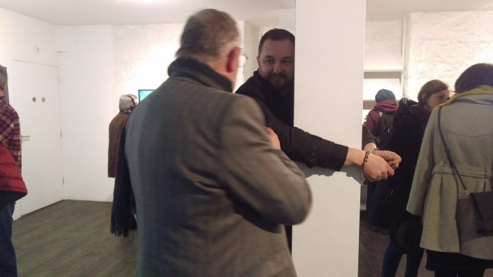 Miljanović’s work is surreal (inc a video of his tutor at Art School being fitted with Lie Detector equipment before being interrogated and beaten by the Secret Police). But the performance, which involved Miljanović handcuffed to a pillar in the middle of the space for the duration of the opening, is possibly the strangest thing I’ve ever experienced. I’ve read about pretty strange stuff in London and elsewhere in the 60s and 70s (shutting audiences into spaces, etc) but this was a personal first.