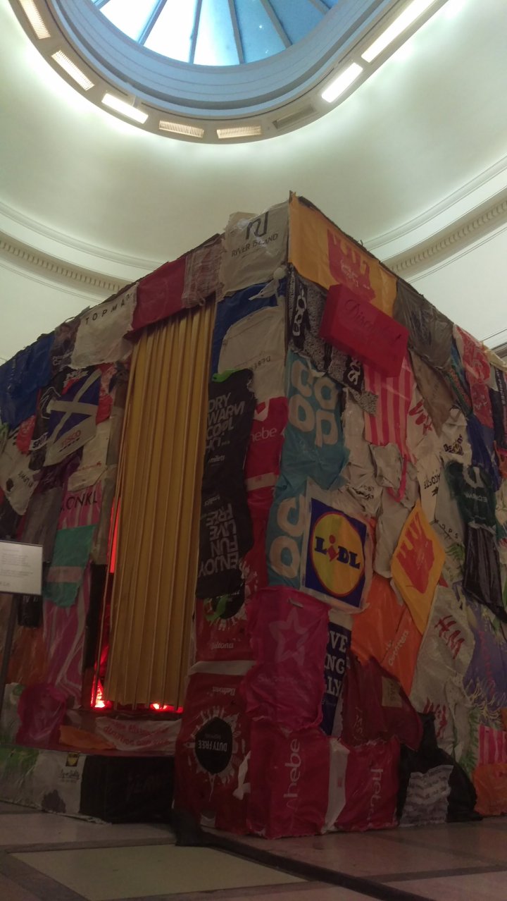 New Contemporaries at the Royal Scottish Academy. Many talented, ambitious and provocative recent graduates from Scottish Art Schools. Very much the spirit of the age. Bachanek’s (Gray’s) environment made of supermarket and other plastic bags creating a seedy chill-out space – mind/life of a dosser or reality for an art school graduate? Plants that don’t want to be touched. Amateur research library as art.