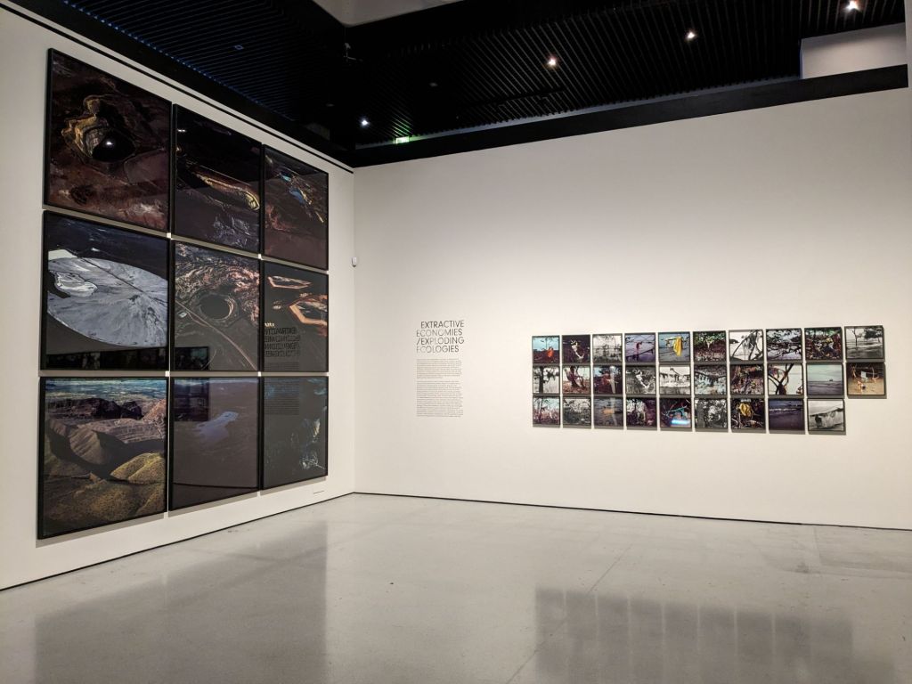 The entrance juxtaposition (above) of Simryn Gill’s work, on the one hand smaller images of plastic bags stuck in vegetation after water levels recede or on the other larger images of open cast mining sites in Australia, kind of sets the stage.