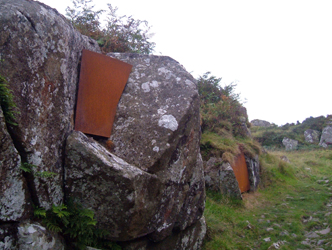 As you pass through the entrance enfilade sheets of coreten are inserted amongst the rocks. Emanating from the steel is the sound of history? Ambient, abstract, geological, incomprehensible?